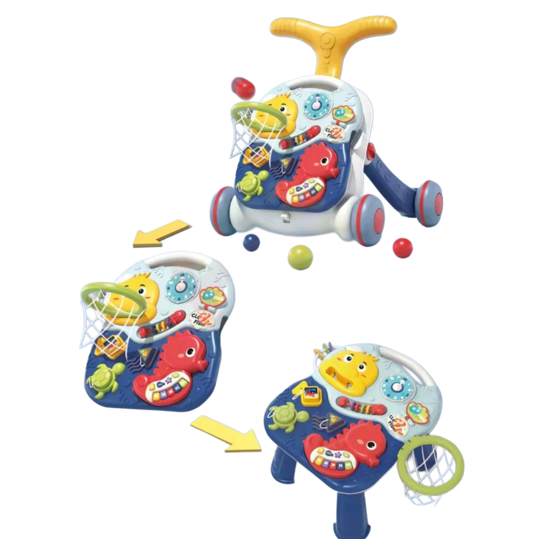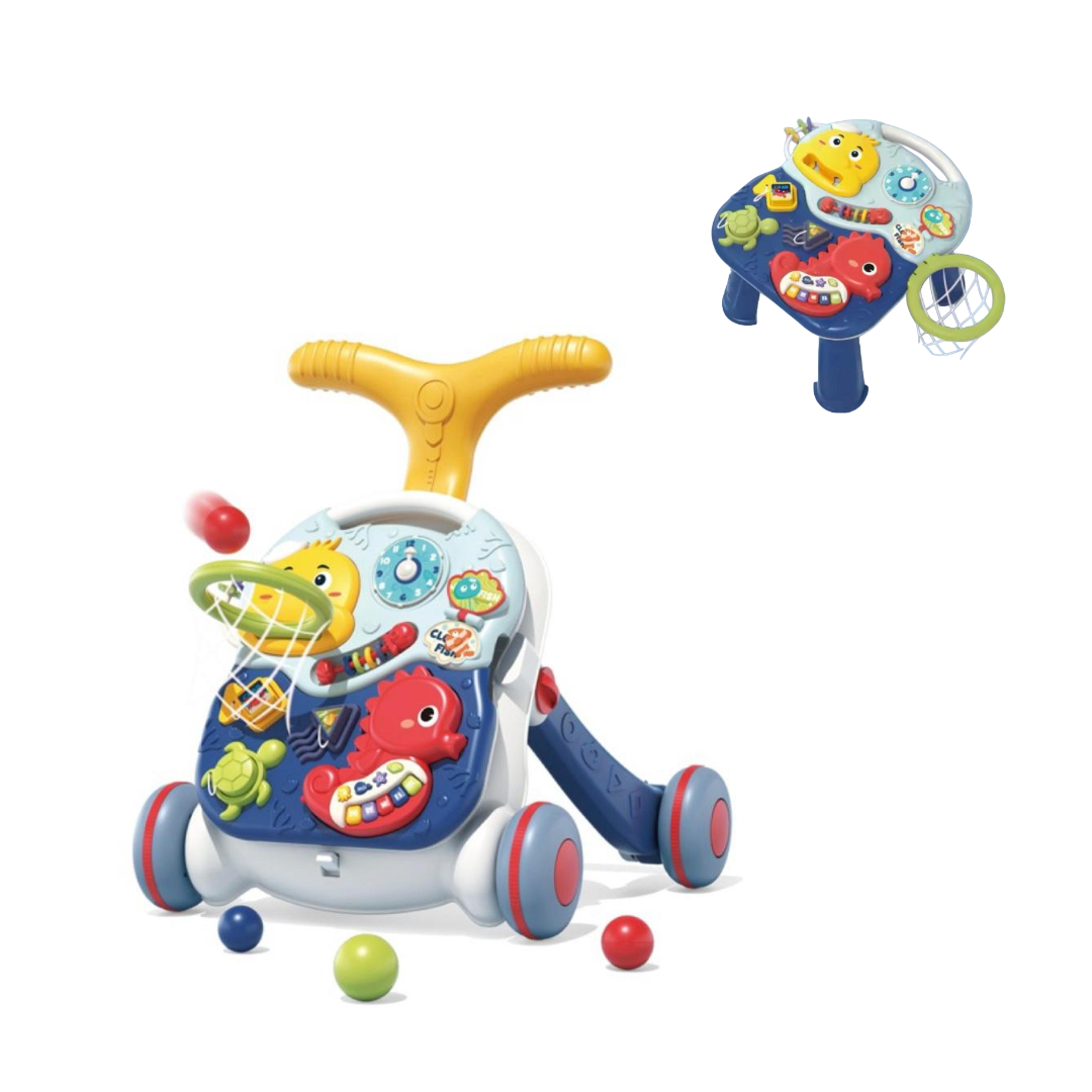 Jucărie multifuncțională ce combină premergătorul, panoul interactiv detașabil și jocul cu mingea. Ideală pentru dezvoltarea coordonării și a primilor pași.