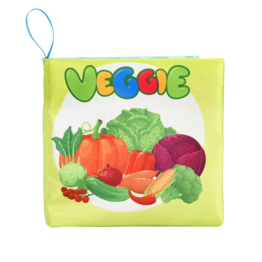 Carte senzoriala din material textil pentru bebelusi, educationala, cu Legume, din material sigur non-toxic