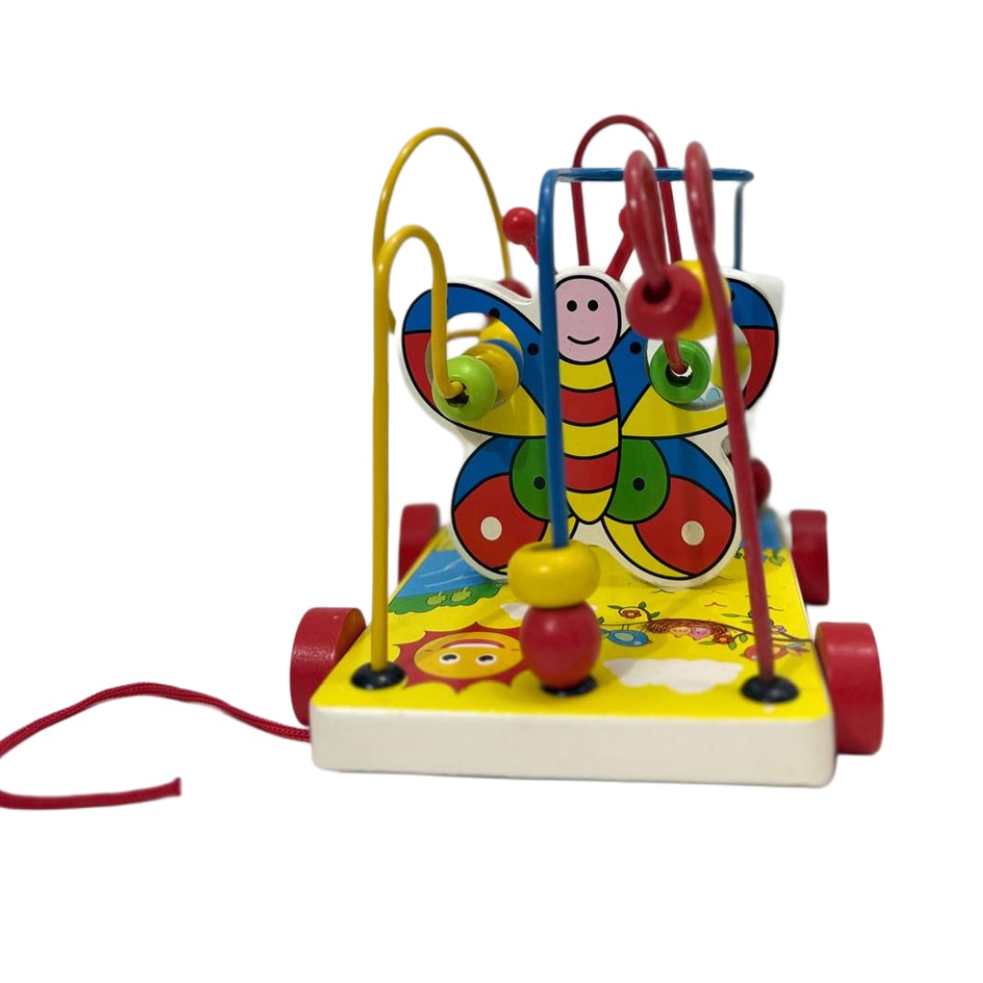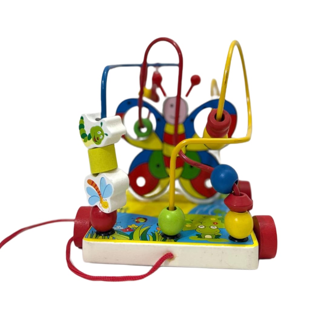 Materiale sigure și durabile – Baza este realizată din lemn rezistent, cu suprafață imprimată în culori vii, iar traseele sunt din metal solid, perfect finisat. Mărgele colorate – Diferite forme și culori care pot fi deplasate pe trasee, ajutând copilul să învețe culorile, să numere și să manipuleze obiecte mici.