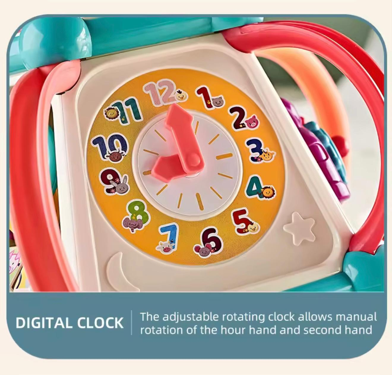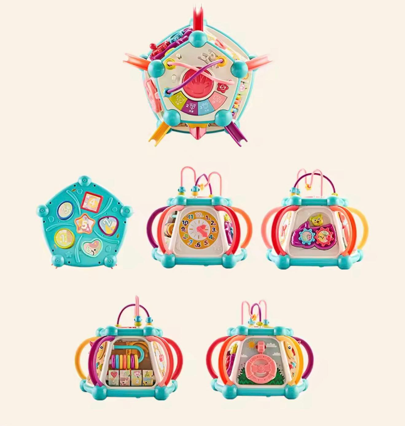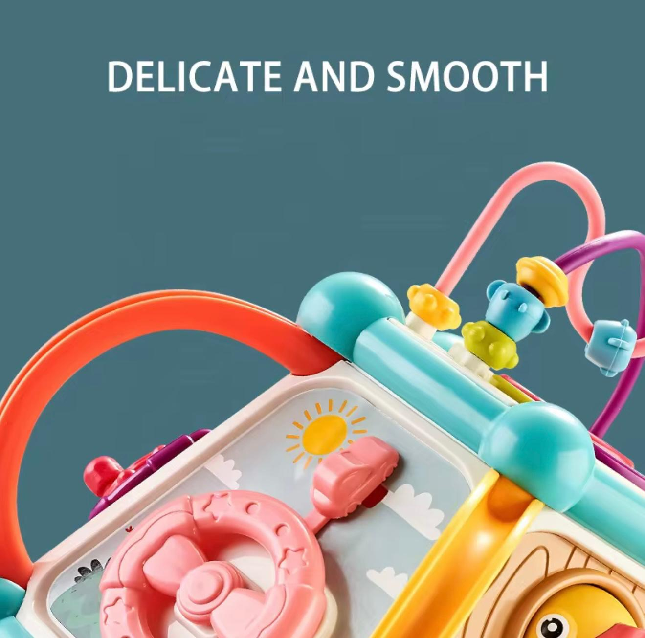 Transformă joaca într-o experiență educativă completă cu Magic Activity Box 7-în-1, un centru interactiv conceput pentru a stimula dezvoltarea bebelușilor prin joc, explorare și activități multisenzoriale. Cu un design colorat și forme rotunjite, acest cub este ideal pentru copiii mici, ajutând la îmbunătățirea coordonării mână-ochi, a motricității fine și a gândirii logice. Fiecare față a centrului oferă o activitate diferită, inspirată din metodele Montessori – ceas rotativ, roți zimțate, panou cu mărgele de tip labirint, mini-volan, jocuri de potrivire și multe elemente tactile care captează atenția și îndeamnă copilul să descopere continuu.