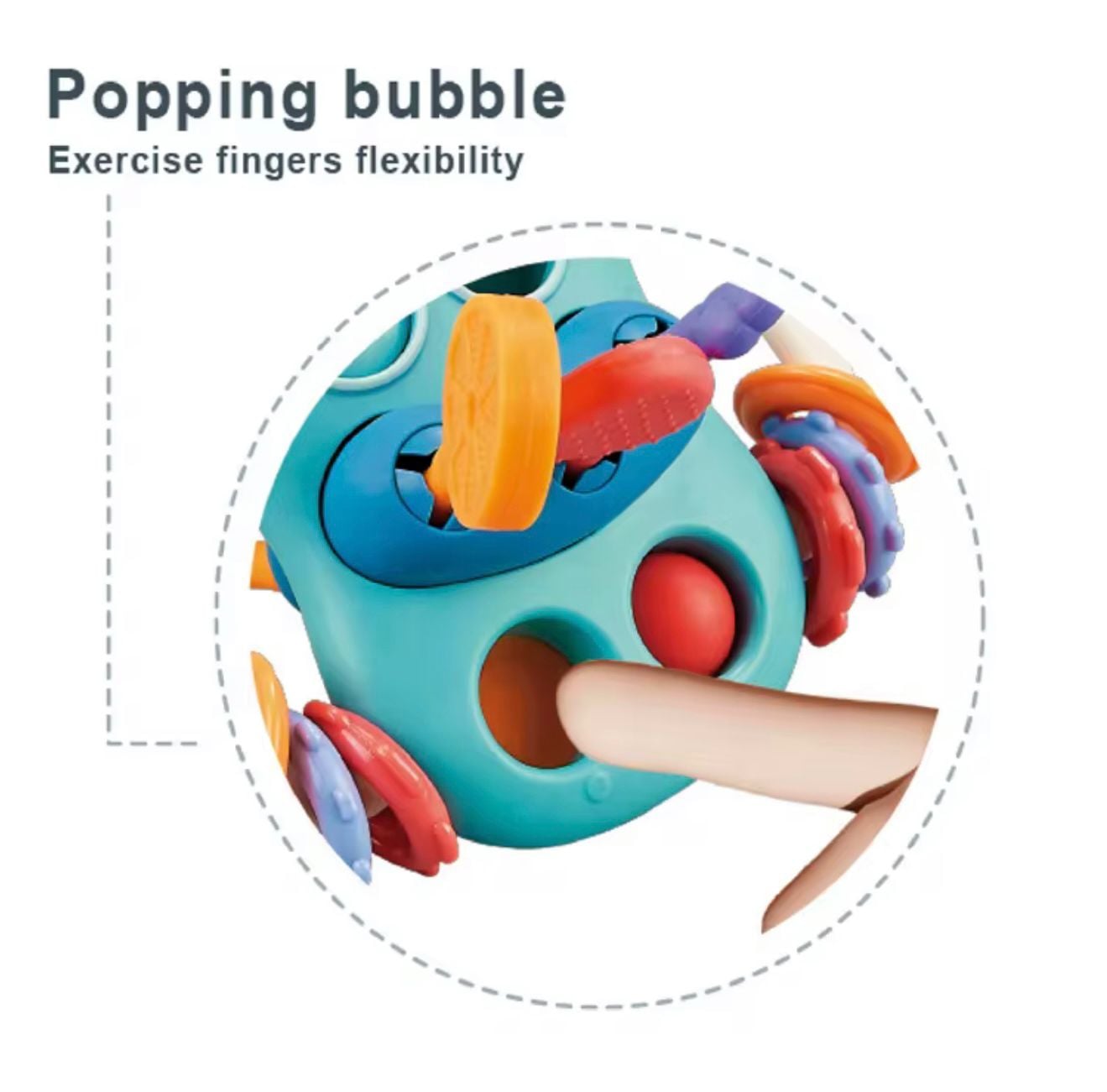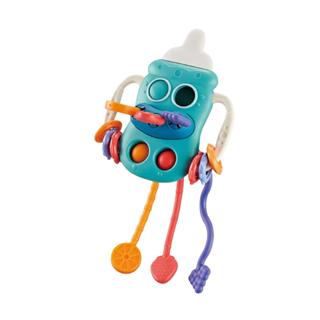 Această jucărie senzorială în formă de biberon transformă fiecare moment de joacă într-o oportunitate de învățare! Cu sfori elastice de tras, bile glisante, butoane pop-it, formă ergonomică și texturi variate, jucăria dezvoltă abilitățile motorii fine, coordonarea mână–ochi și curiozitatea naturală a copilului. Este ușoară, sigură și perfectă pentru joacă acasă, în mașină sau în cărucior.