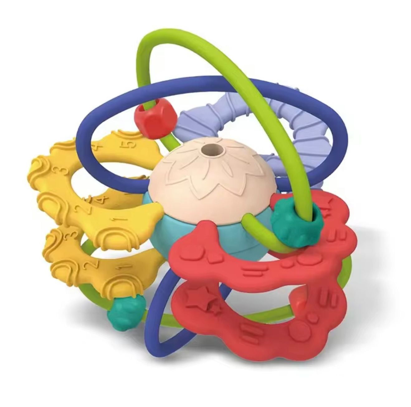 Această jucărie senzorială colorată este perfectă pentru primele luni de viață ale bebelușului, oferind o combinație ideală de texturi, sunete, mișcare și forme care sprijină dezvoltarea motricității fine și explorarea tactilă. Concepută special pentru mâinile mici, jucăria include multiple brațe zornăitoare si inele mobile, menținând interesul copilului pentru mult timp. Beneficii pentru dezvoltarea bebelușului